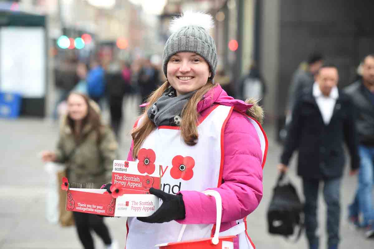 Our Edinburgh and Glasgow Poppy collections are focused on street collections taking place in the lead up to Armistice Day and Remembrance Sunday.