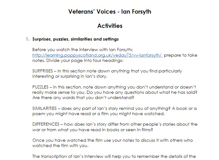 Veterans' Voices is a unique film resource, interviewing veterans to capture their experiences and thoughts on remembrance.