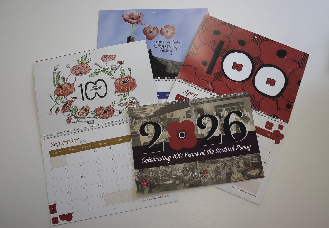 The calendar was designed as part of Poppyscotland’s annual learning competition which aims to engage young people with our charity. To celebrate the upcoming centenary of the poppy in Scotland, Scottish pupils from P4 – S3 submitted their artwork which now form the final pages of our fantastic calendar. The calendar features unique and beautiful illustrations that capture the momentous occasion of marking 100 years of the poppy in Scotland.
